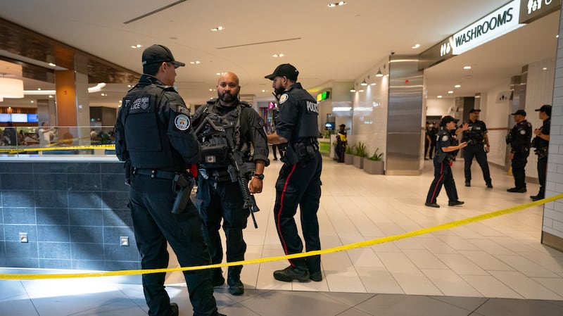 Heavy police presence can be seen in the Scarborough Town Centre food court after a shooting leaves one person dead.