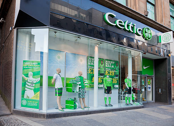 Glasgow, Scotland, UK – April 23, 2011: Frontage of the merchandising retail shop for Celtic Football Shop in Argyle Street in central Glasgow. Celtic FC is one of the leading soccer clubs in Scotland, and one of the historic ‘Old Firm’.